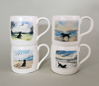 Fresh skies, new beginnings. This handmade mug features a decal (transfer) from my original watercolour design of a spaniel gazing skyward, watching a bird in flight. It’s a joyful little reminder of springtime walks. The same image is on the reverse so whether you're left or right handed, you can enjoy the scene.