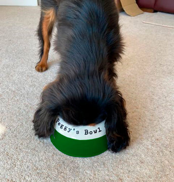 Each bowl is handmade by me in Hampshire and glazed in your chosen colour. You can personalise it with your dog’s name, a nickname, or something fun—and if your pup’s a bit of a gulper, there’s a Go-Slo version too.