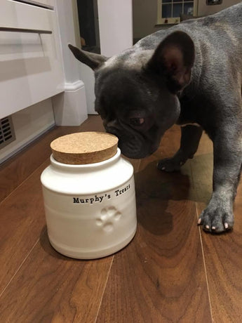 Our chunky ceramic treat jar is a stylish, durable upgrade that stores your pup’s snacks in style. Made by me in Hampshire and glazed to enhance your kitchen decor, it comes with a snug cork lid to keep treats fresh and chew-ready.